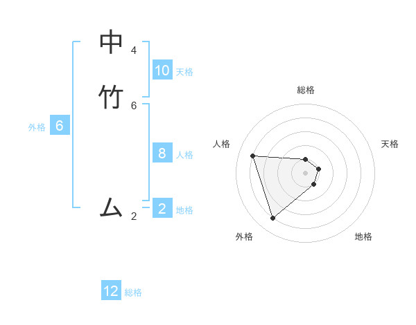 中竹 ムさんの総格は12画の1点!