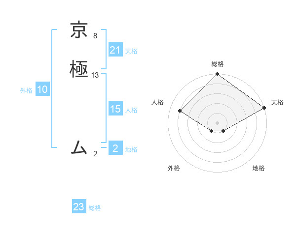 京極 ムさんの総格は23画の5点