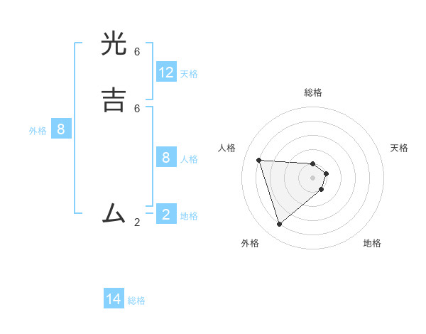 光吉 ムさんの総格は14画の1点!