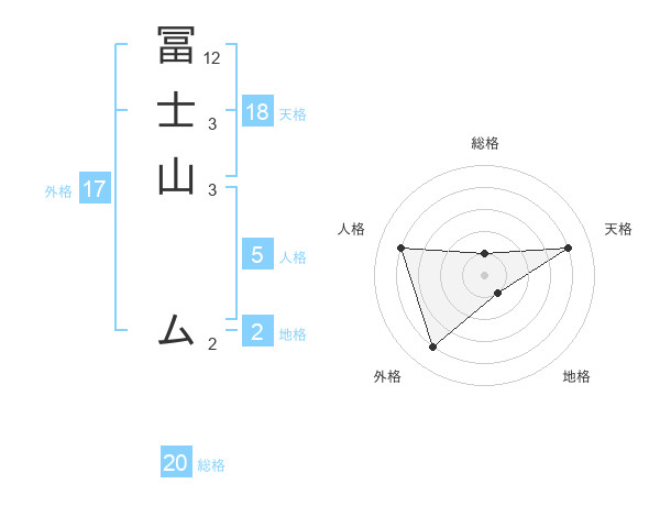 冨士山 ムさんの総格は20画の1点!