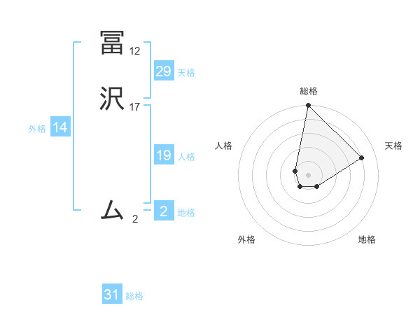 冨沢 ムさんの総格は31画の5点!