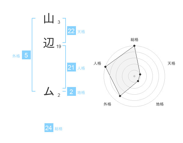 山辺 ムさんの総格は24画の5点!