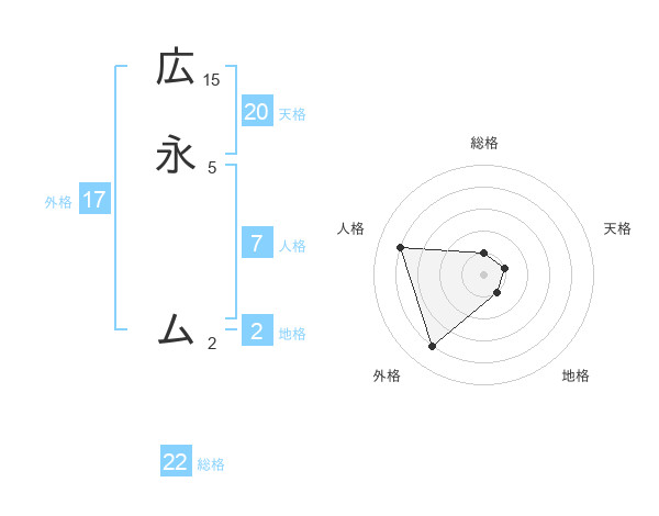 広永 ムさんの総格は22画の1点!