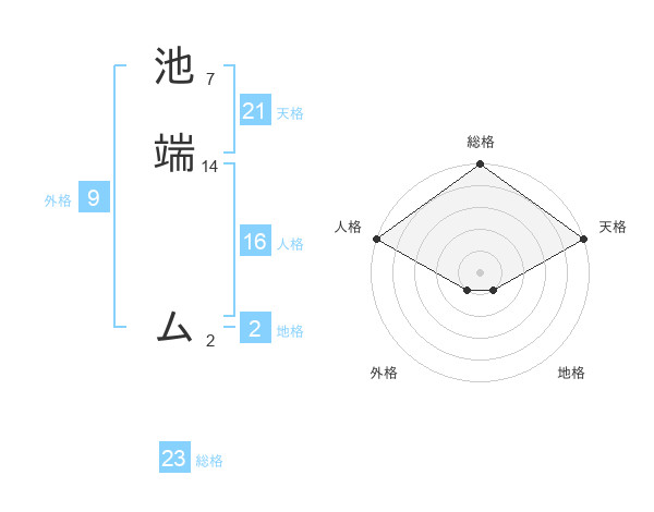 池端 ムさんの総格は23画の5点!