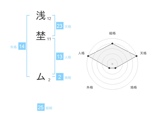 浅埜 ムさんの天格は23画の5点!