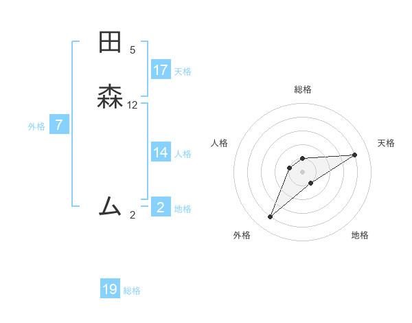 田森 ムさんの天格は17画の4点!