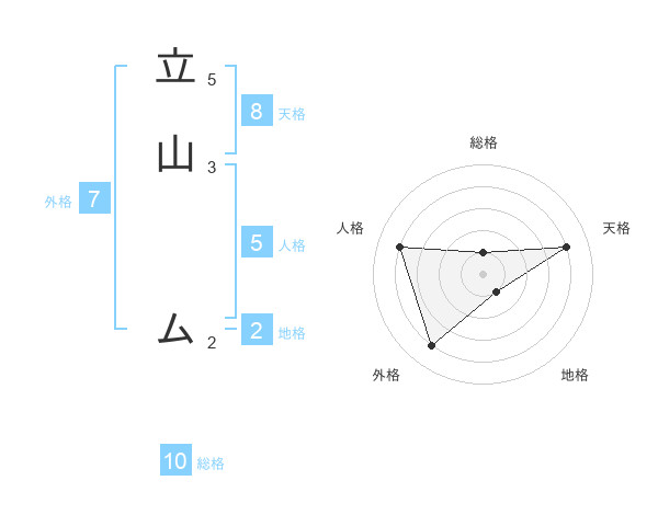 立山 ムさんの天格は8画の4点!