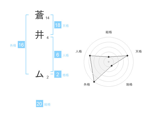 蒼井 ムさんの天格は18画の4点!