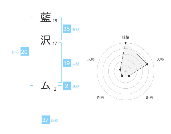 藍沢 ムさんの総格は37画の5点!