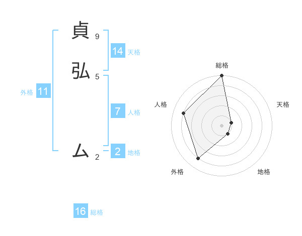 貞弘 ムさんを姓名の画数から五運を鑑定