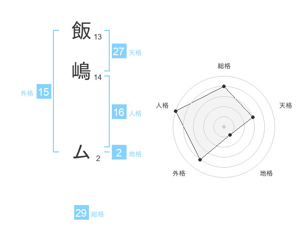 飯嶋 ムさんの総格は29画の4点!
