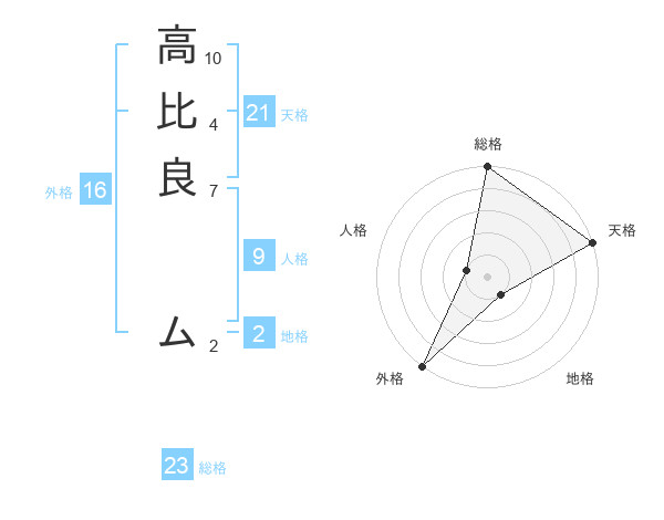 高比良 ムさんの総格は23画の5点!