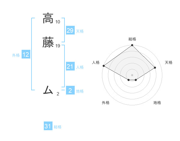 高藤 ムさんの総格は31画の5点!