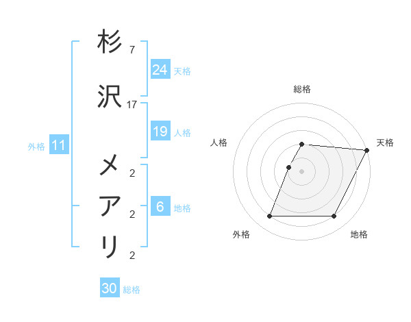 杉沢 メアリさんを姓名の画数から五運を鑑定