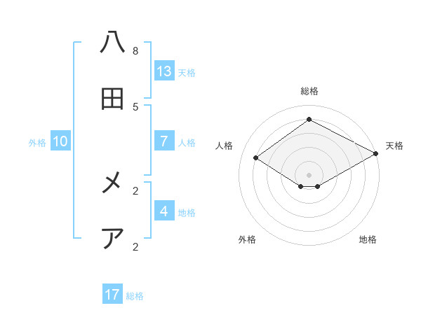 八田 メアさんの総格は17画の4点!