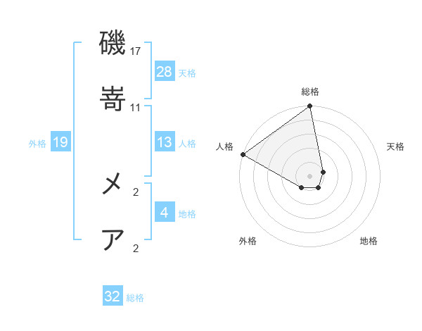 磯嵜 メアさんの総格は32画の5点!
