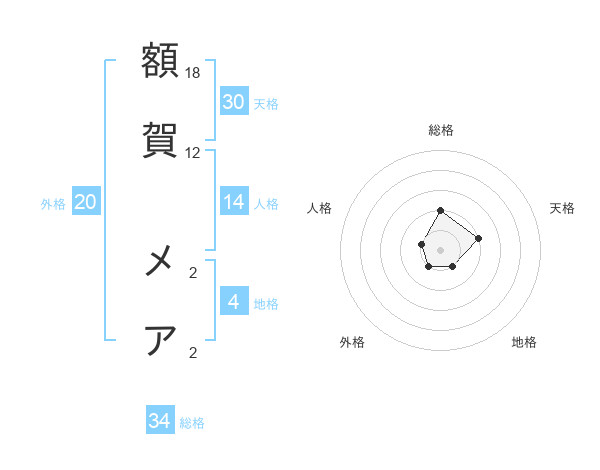 額賀 メアさんの天格は30画の2点!