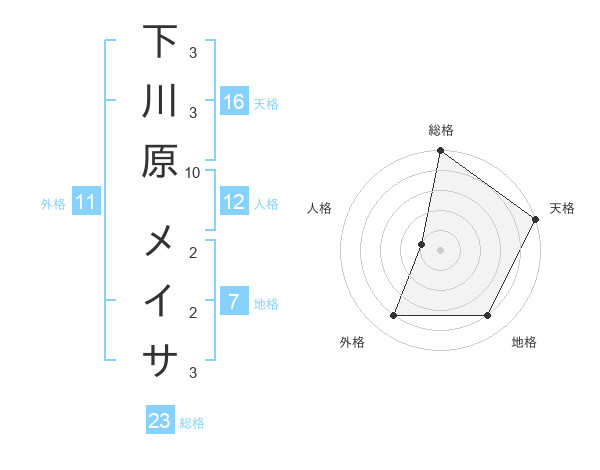下川原 メイサさんを姓名の画数から五運を鑑定