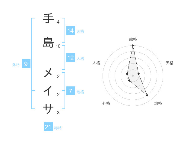 手島 メイサさんの総格は21画の5点!