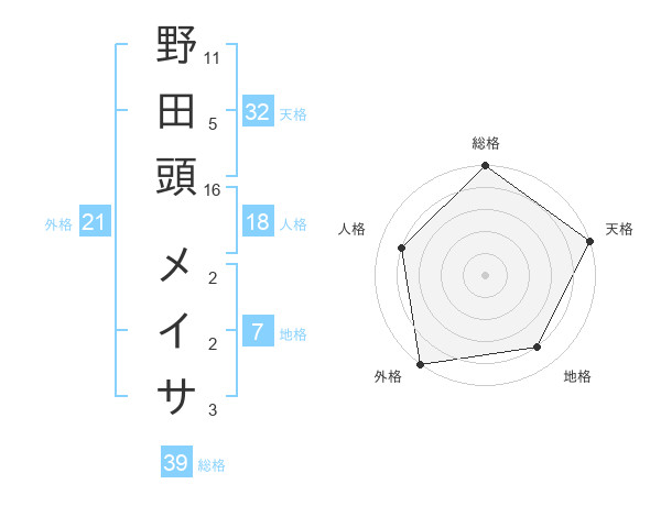 野田頭 メイサさんの総格は39画の5点!