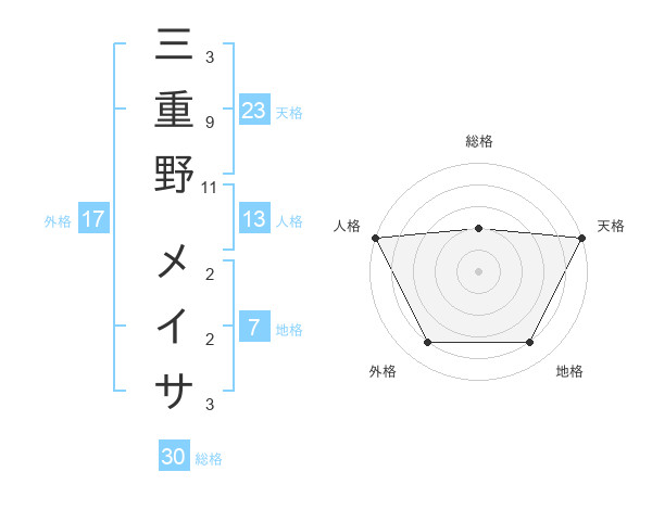 三重野 メイサさんを姓名の画数から五運を鑑定