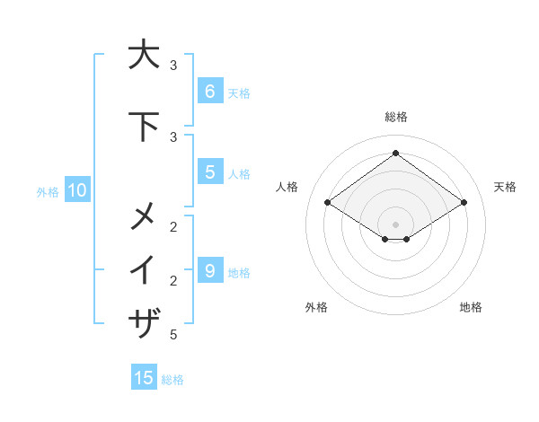 大下 メイザさんの総格は15画の4点!