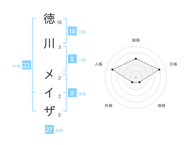 徳川 メイザさんを姓名の画数から五運を鑑定