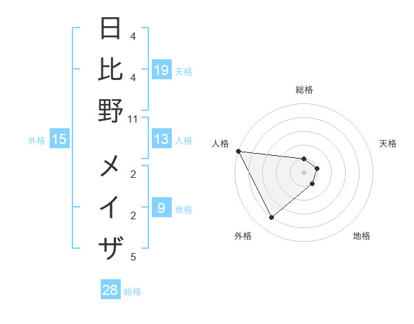 日比野 メイザさんを姓名の画数から五運を鑑定