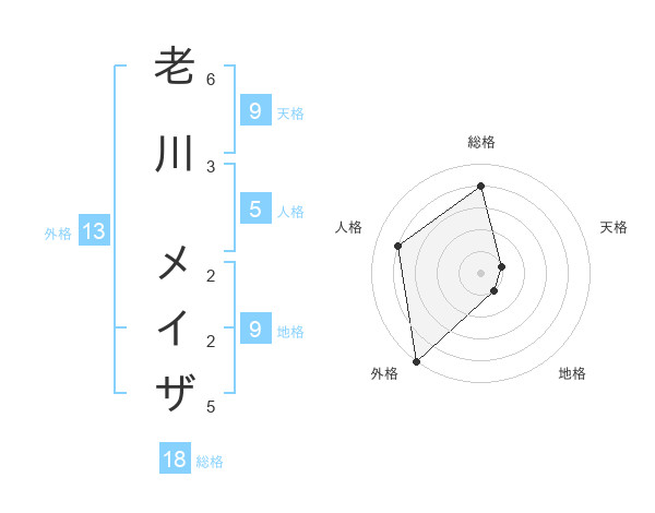老川 メイザさんの外格は13画の5点!