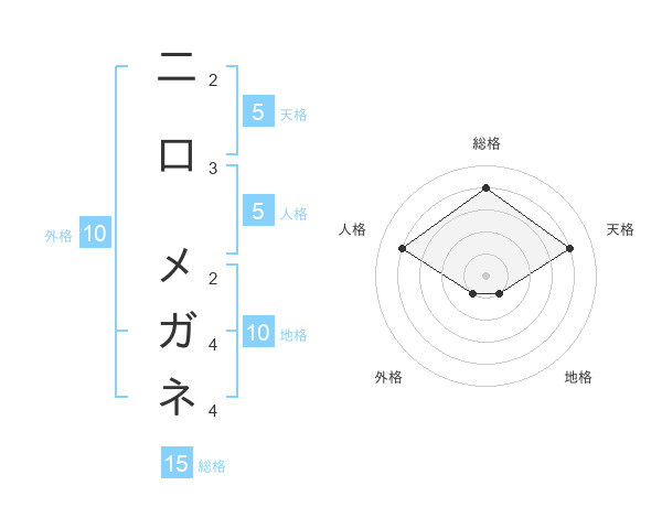 二口 メガネさんの総格は15画の4点!