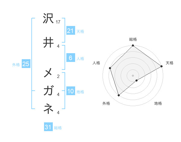 沢井 メガネさんを姓名の画数から五運を鑑定