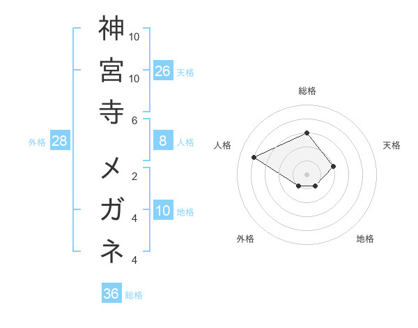 神宮寺 メガネさんの天格は26画の2点