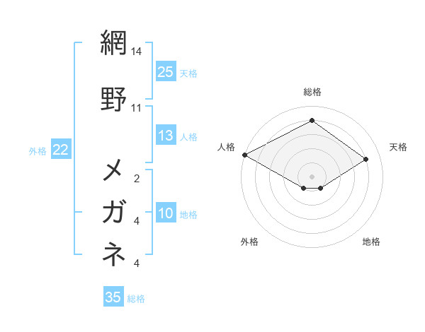 占い結果は姓名判断である以上、良い場合も悪い場合もありますが、決してお名前を誹謗中傷するものでなく、画数の自動計算によって得られたものです。また、本サイトの検索によって得られた鑑定結果で、第三者を誹謗中傷したり名誉を棄損するような行為を禁じます。