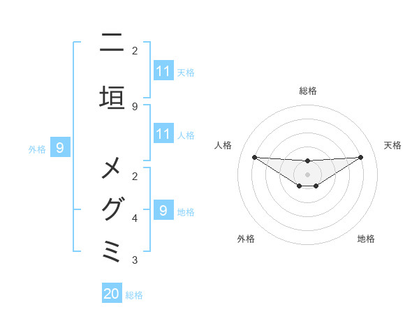 二垣 メグミさんの総格は20画の1点!