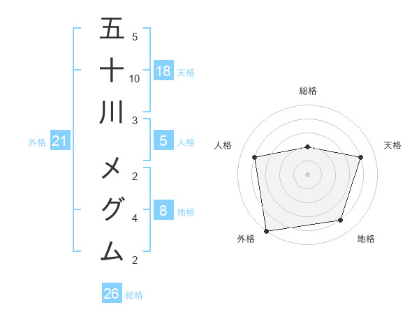 五十川 メグムさんを姓名の画数から五運を鑑定