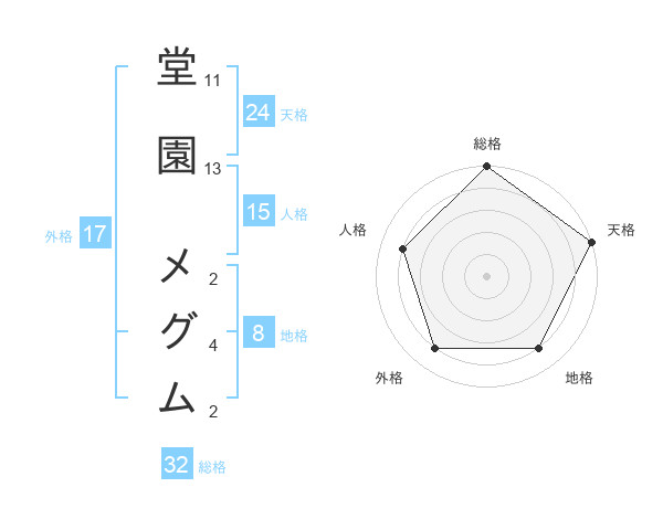 堂園 メグムさんを姓名の画数から五運を鑑定