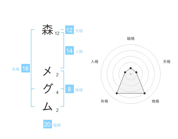 森 メグムさんの総格は20画の1点!