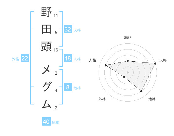 野田頭 メグムさんを姓名の画数から五運を鑑定