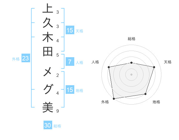 上久木田 メグ美さんを姓名の画数から五運を鑑定