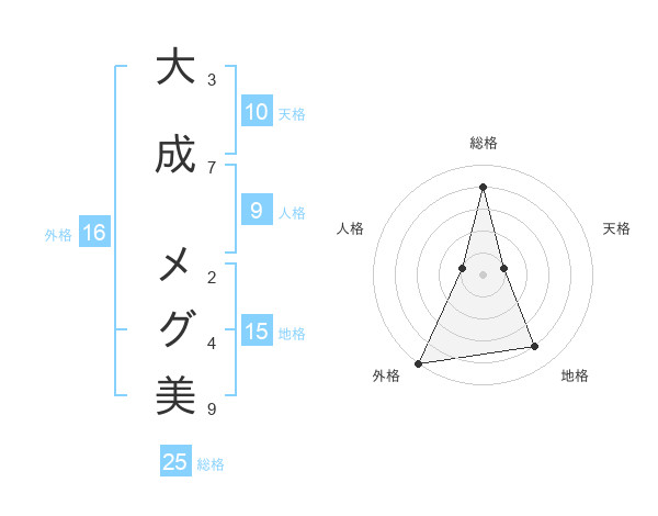 大成 メグ美さんを姓名の画数から五運を鑑定