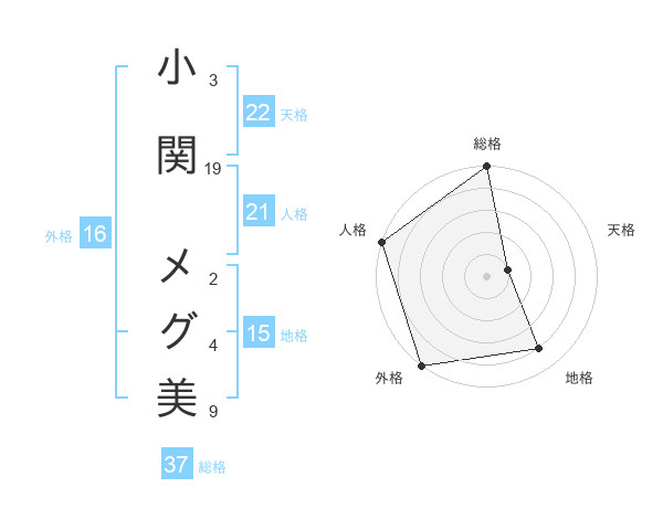 小関 メグ美さんの総格は37画の5点