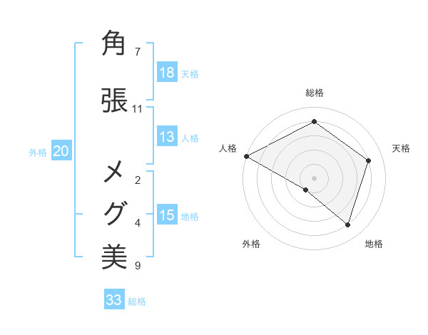 角張 メグ美さんを姓名の画数から五運を鑑定