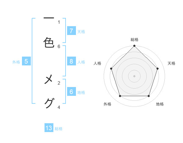 一色 メグさんの総格は13画の5点!