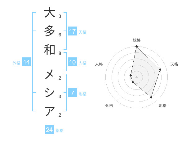 大多和 メシアさんを姓名の画数から五運を鑑定