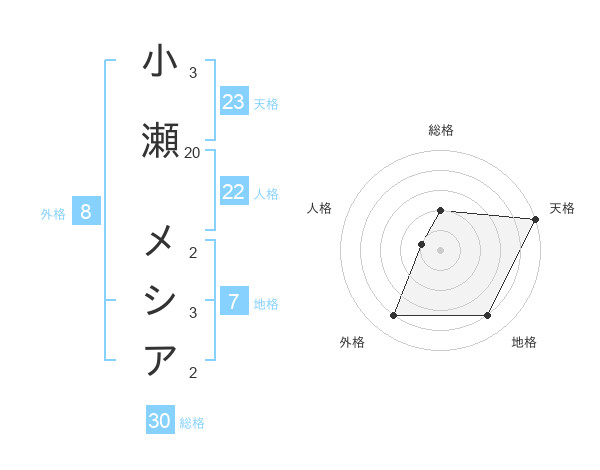 小瀬 メシアさんの総格は30画の2点