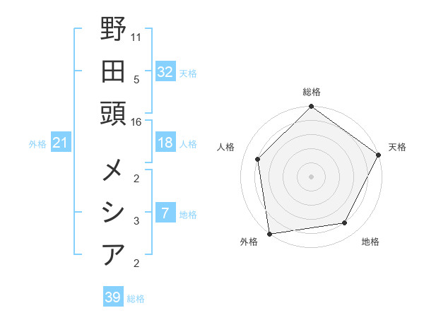 野田頭 メシアさんの天格は32画の5点!