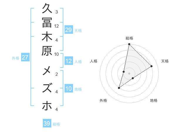 久冨木原 メズホさんを姓名の画数から五運を鑑定