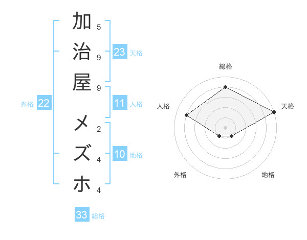加治屋 メズホさんを姓名の画数から五運を鑑定
