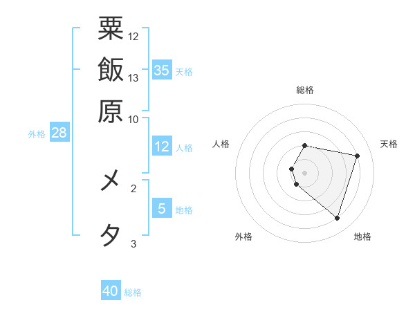 粟飯原 メタさんの天格は35画の4点!
