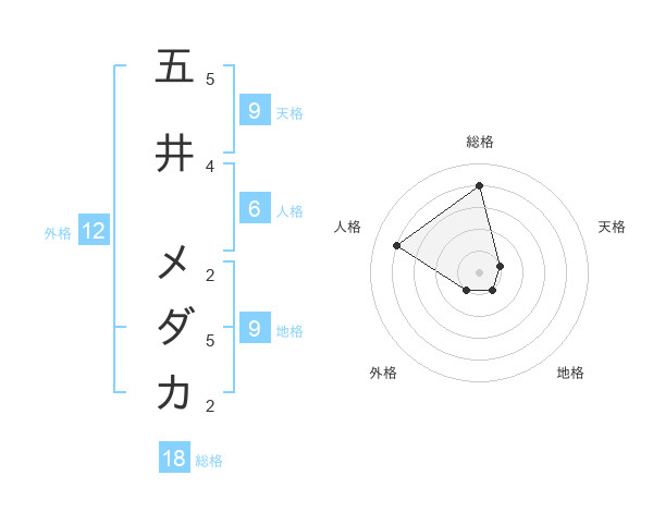 五井 メダカさんの総格は18画の4点!